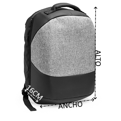Mochila antirrobo realizada en nylon. Compartimento con salida USB para conectar un Power Bank (no incluido). Incluye cable micro USB. Bolsillo multiusos en tira derecha. Bolsillo principal con dos compartimentos acolchados ideal para portátil y Tablet.