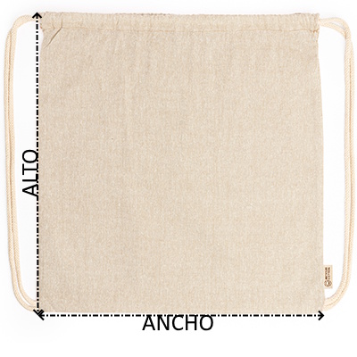 Mochila de cordones en algodón reciclado de 120 g/m² con acabado jaspeado y cordones en color natural. Disponible en varios colores.