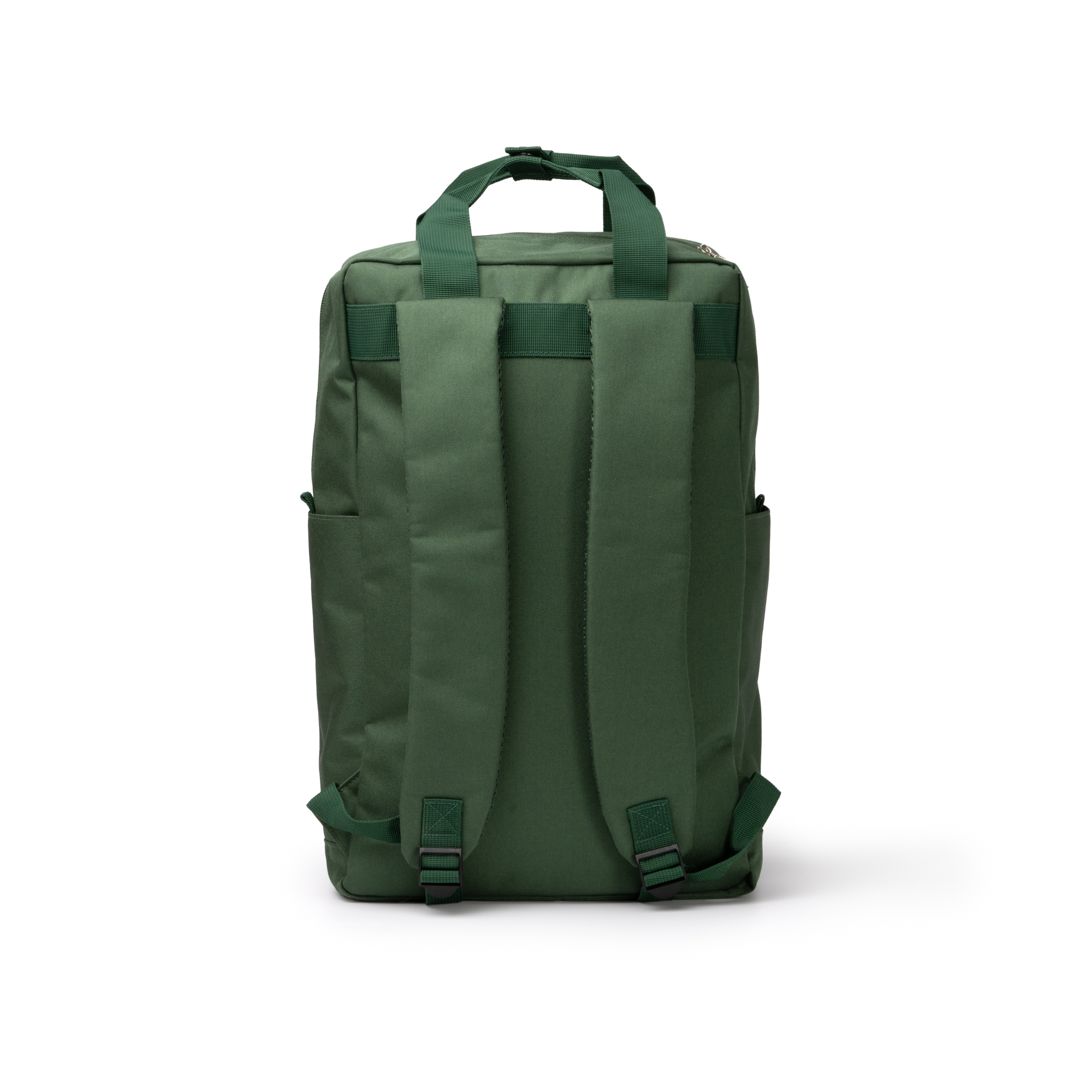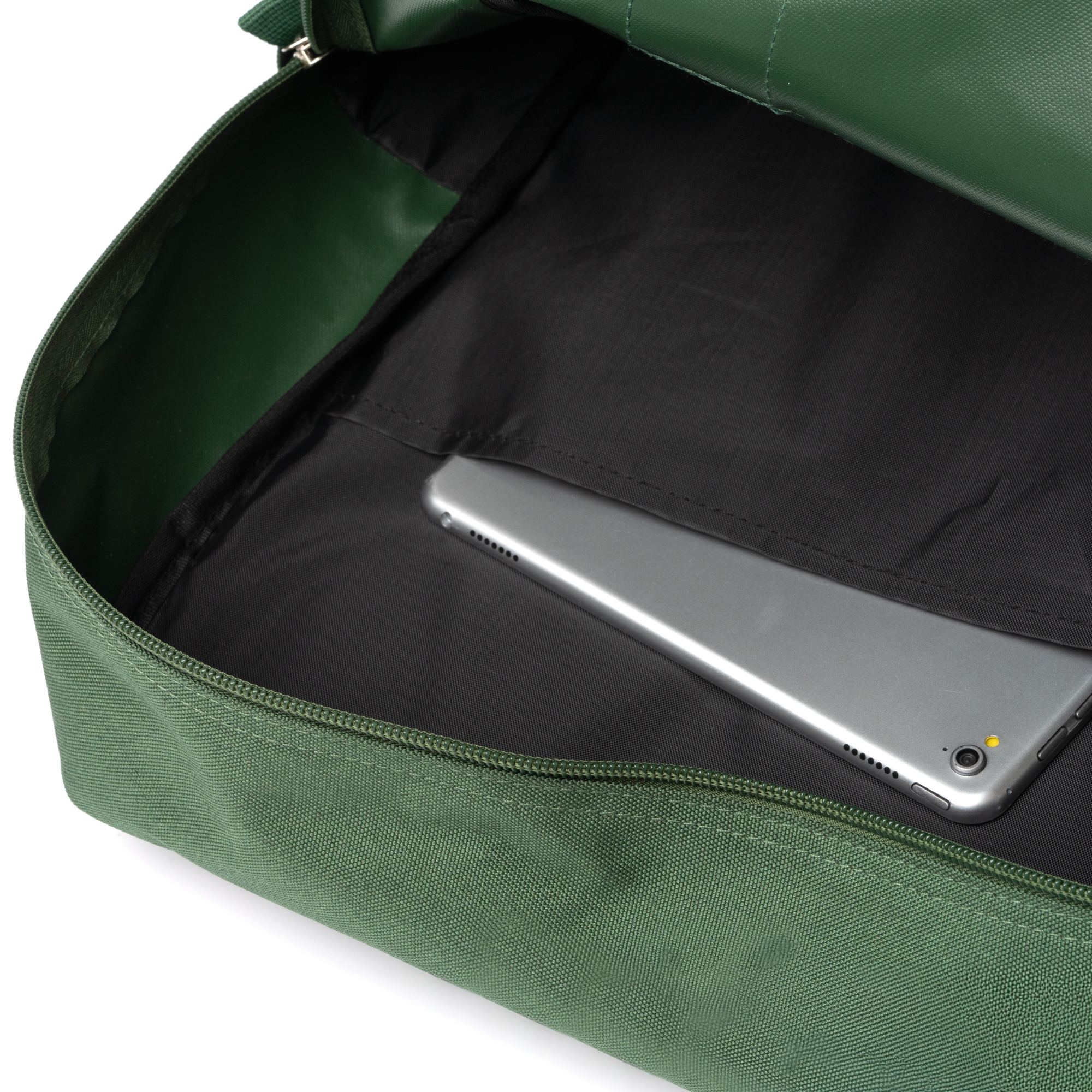 Mochila de poliéste 600D con un compartimento principal. En su interior cuenta con un bolsillo para transporte de portátil de hasta 16″. En el exterior incorpora un compartimento frontal con cierre de cremallera, doble asa para transporte en la parte superior y asas y espalda acolchadas.