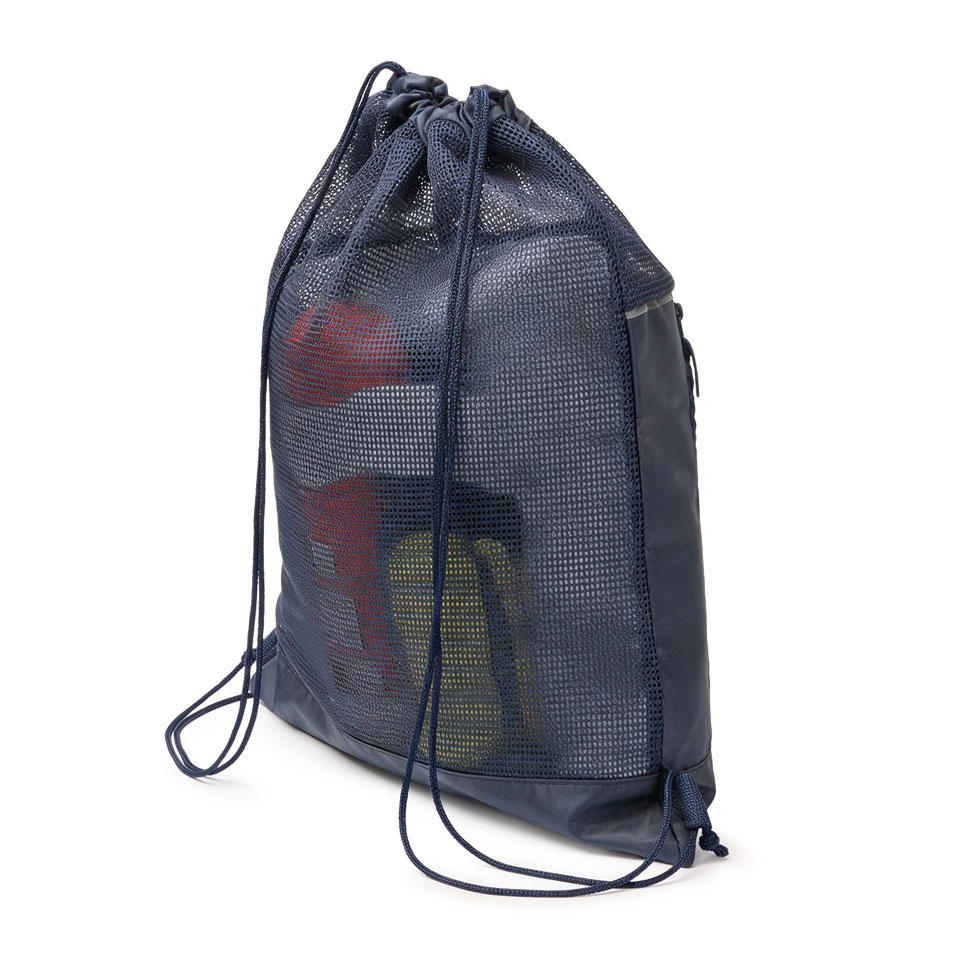 Mochila de cuerdas ajustables elaborada en RPET 210D con tejido de rejilla en su parte superior y en toda su parte posterior. Cuenta con un bolsillo exterior frontal para el transporte de objetos más pequeños y una banda reflectante frontal. Este bolsillo incluye un tirador a conjunto del cuerpo de la mochila. Una opción práctica y ligera.