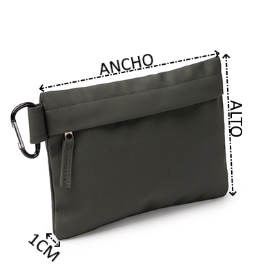 Neceser elaborado en suave poliuretano, de acabado en color liso. Cuenta con cierre de cremallera y tirador a conjunto. Incluye un mosquetón para hacer más cómodo su transporte.