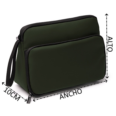 Neceser elaborado en suave PU Leather en forma triangular. Cuenta con un compartimento principal con bolsillos internos de rejilla. Incluye un bolsillo frontal de cremallera doble y completa apertura con separadores elásticos para poder clasificar diferentes enseres. Los paneles de este neceser se encuentran acolchados, lo que lo convierte en una opción segura para guardar y proteger tus enseres de higiene y belleza. Además, cuenta con un asa para transporte para llevarlo donde quieras.