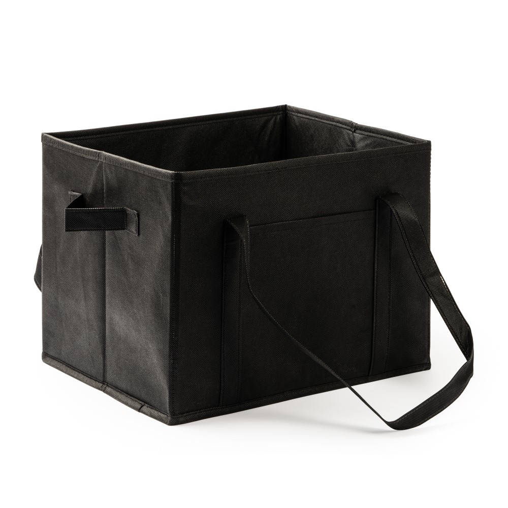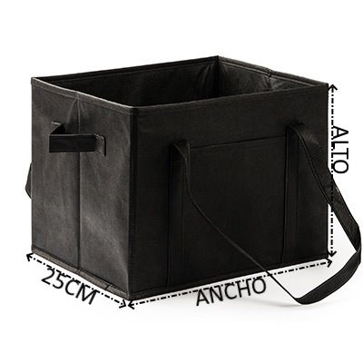 Organizador de maletero para coche en resistente non-woven. Asas de transporte reforzadas, asas laterales y bolsillo frontal. Base rígida para un mejor ajuste.