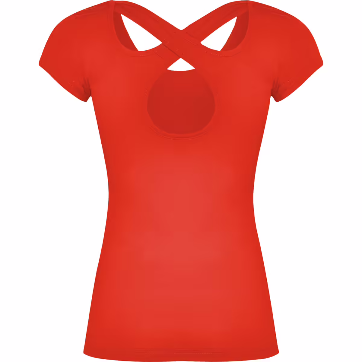 Camiseta de manga corta y escote redondeado en la parte delantera. Detalle espalda cruzada con escote en forma de lágrima.