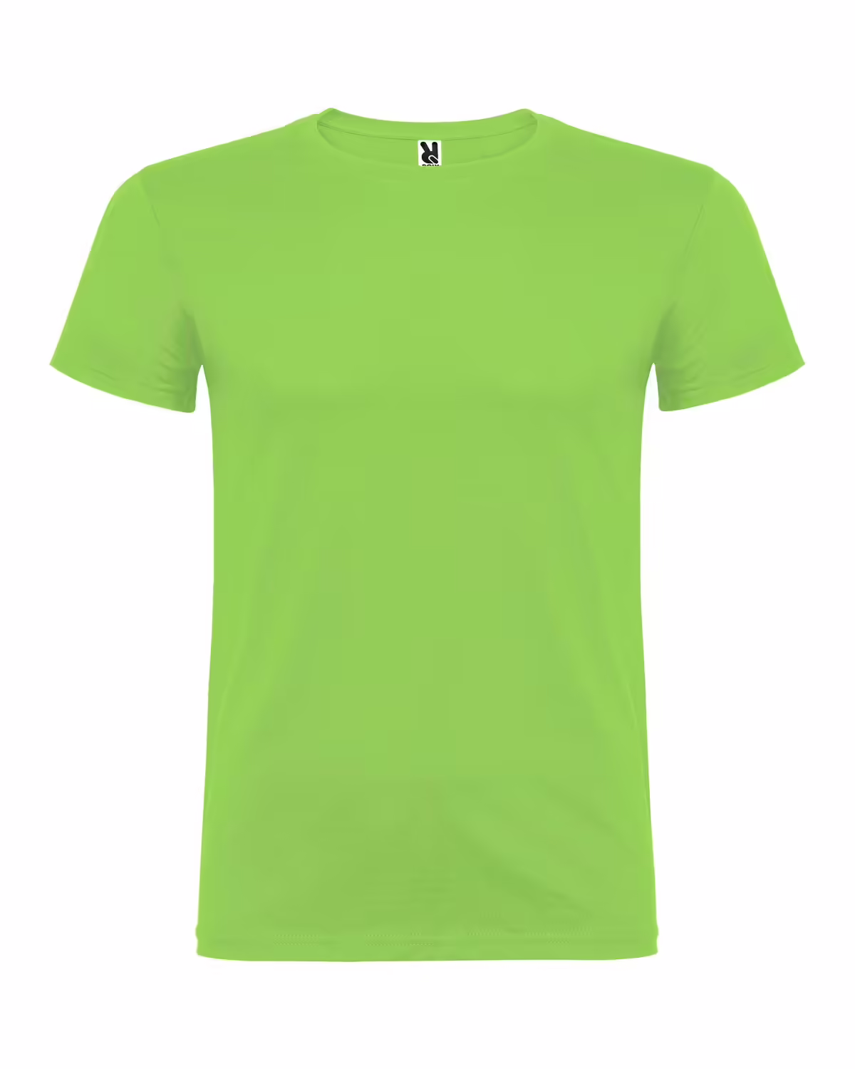 Camiseta de manga corta de cuello redondo doble con elastano, confeccionada en tejido tubular en tallas de adulto, y con costuras laterales en tallas de niño, con cubrecosturas reforzado en cuello.