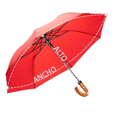 El mango de madera natural le da un toque de estilo y calidez al paraguas, brindando una sensación natural y cómoda al agarrarlo. Además, el paraguas cuenta con un botón de apertura automática para facilitar su uso y un cierre con velcro para un almacenamiento seguro.