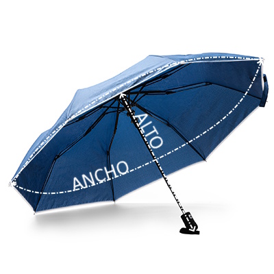 Un paraguas realizado en RPET (poliéster reciclado) con tejido pongee 190T y acabado en bandas reflectantes es una opción resistente y sostenible para protegerte de la lluvia. El tejido pongee 190T es duradero y repelente al agua, lo que garantiza una buena protección contra la lluvia. Las bandas reflectantes añaden un elemento de seguridad, ya que reflejan la luz y aumentan la visibilidad en condiciones de poca luz.