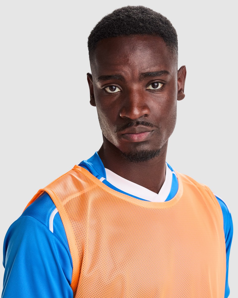 Peto deportivo transpirable unisex. Vivo en el mismo tejido en sisas y cuello. Doble pespunte en el bajo.