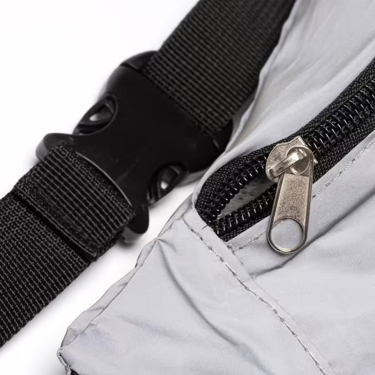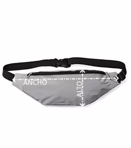 Riñonera reflectante elaborada en poliéster, con un amplio bolsillo frontal. Cuenta con un sistema de hebilla para hacer más cómodo su uso, además de una cinta ajustable y cierre de cremallera del compartimento principal.