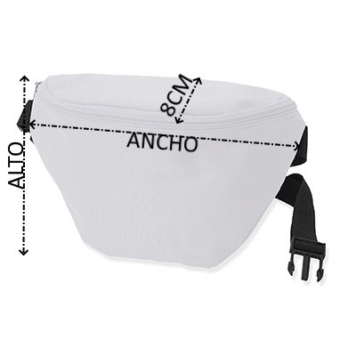 Riñonera con un bolsillo frontal y otro trasero en la parte posterior para el almacenaje de pequeños objetos. Cremalleras y tiradores en color a juego con la riñonera. Cinta y hebilla ajustadora en color negro.