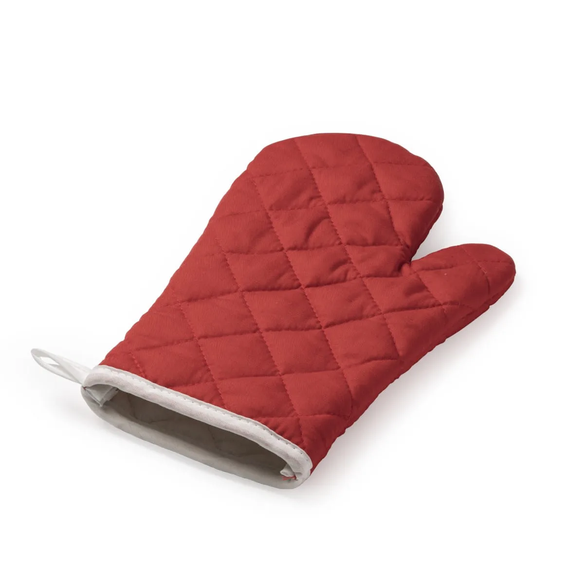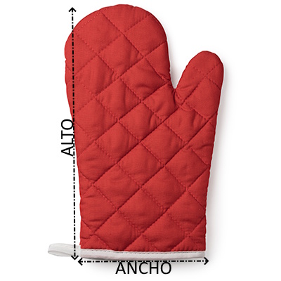 Set de cocina compuesto por agarrador y manopla en suave algodón y poliéster. Una cara lisa ideal para marcaje y cinta para colgar. Disponible en varios colores.