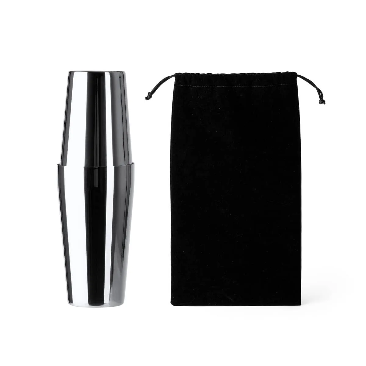 Set de cóctel en acero inoxidable 304. Incluye vaso medidor, coctelera de 580ml, colador y cuchara. Incluye una cómoda y elegante bolsa de transporte.