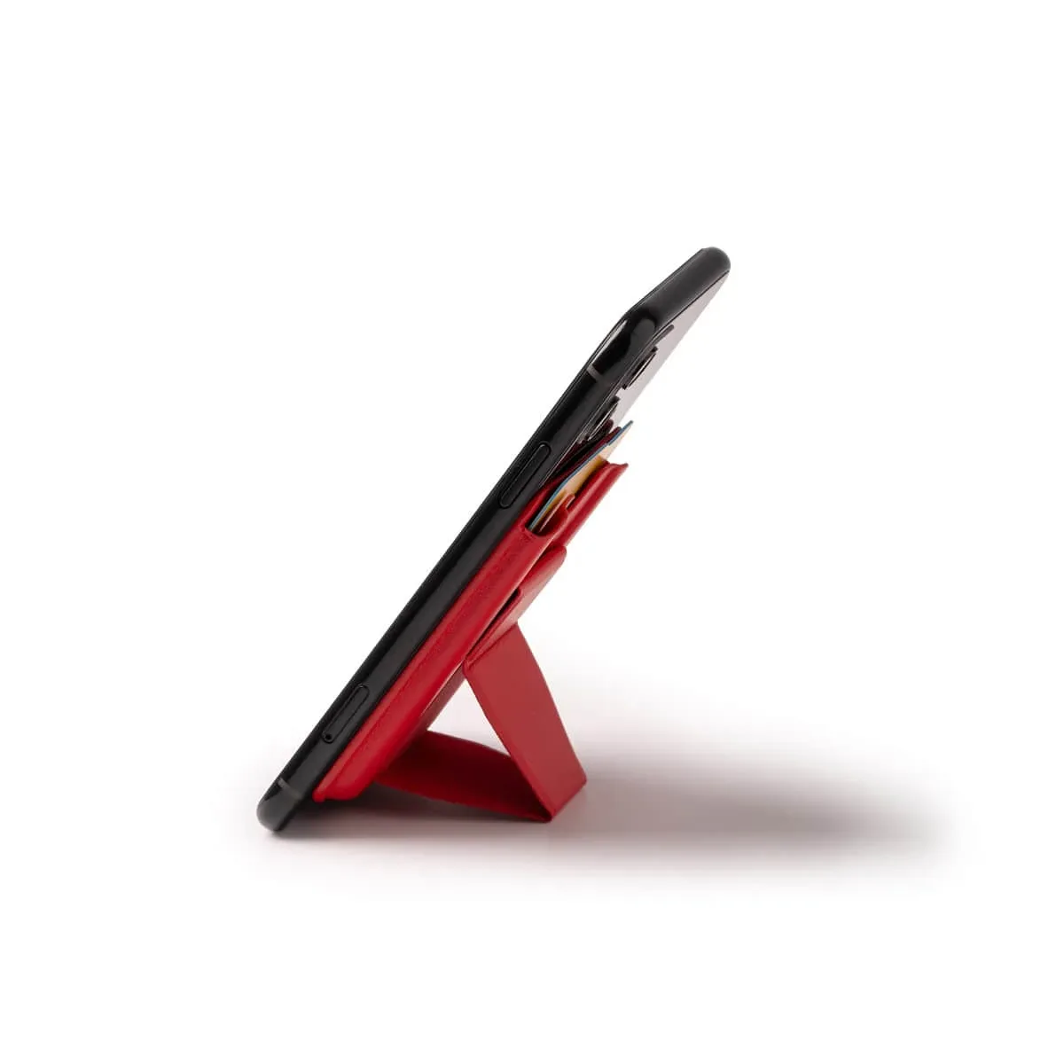 Tarjetero con soporte plegable realizado en PU reciclado.