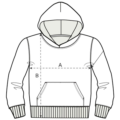 Manga pegada. Capucha forrada en punto de jersey. Apertura más amplia en el cuello para una mejor colocación. Bies interior en punto de jersey en cuello. Media luna interior en tejido principal. Puntada simple en cuello y alrededor de la capucha. Canalé 1×1 en puños y bajo. Puntada doble en puños y bajo.