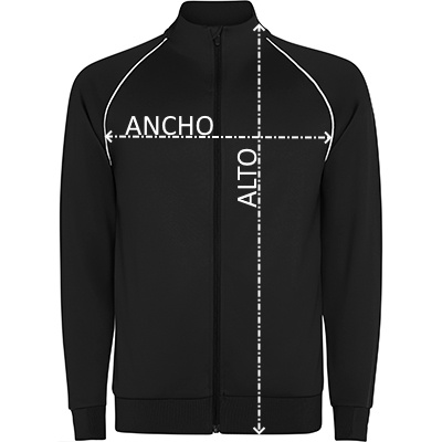 Sudadera deportiva manga ranglán de cuello alto y cremallera frontal. Rib 1×1 en bajo, cuello y puños. Cubrecosturas de tejido principal. Detalle en cuello trasero y puño en tejido principal. Vivo reflectante en sisa ranglán en delantero y espalda.