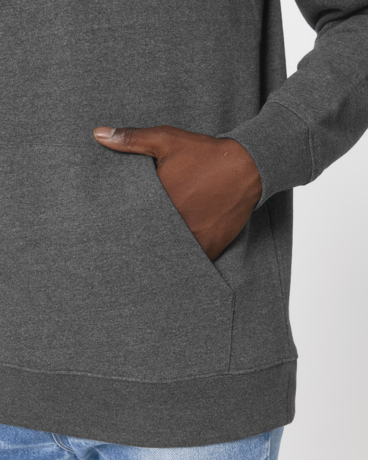 LA SUDADERA RECICLADA CON CAPUCHA UNISEX Confeccionada con residuos orgánicos de corte propios Manga pegada Capucha doble en el tejido principal Cordón redondo en el mismo tono rematado con extremos de acabado metálico Ojales metálicos Bies interior de espiga en la parte trasera del cuello Media luna del tejido principal en la zona trasera del cuello Pespunte simple en cuello y en apertura de la capucha Canalé 1×1 en puños y bajo Pespunte doble en sisas, puños y bajo Bolsillo canguro en la parte delantera Las fibras recicladas hacen que la superficie del tejido sea menos lisa