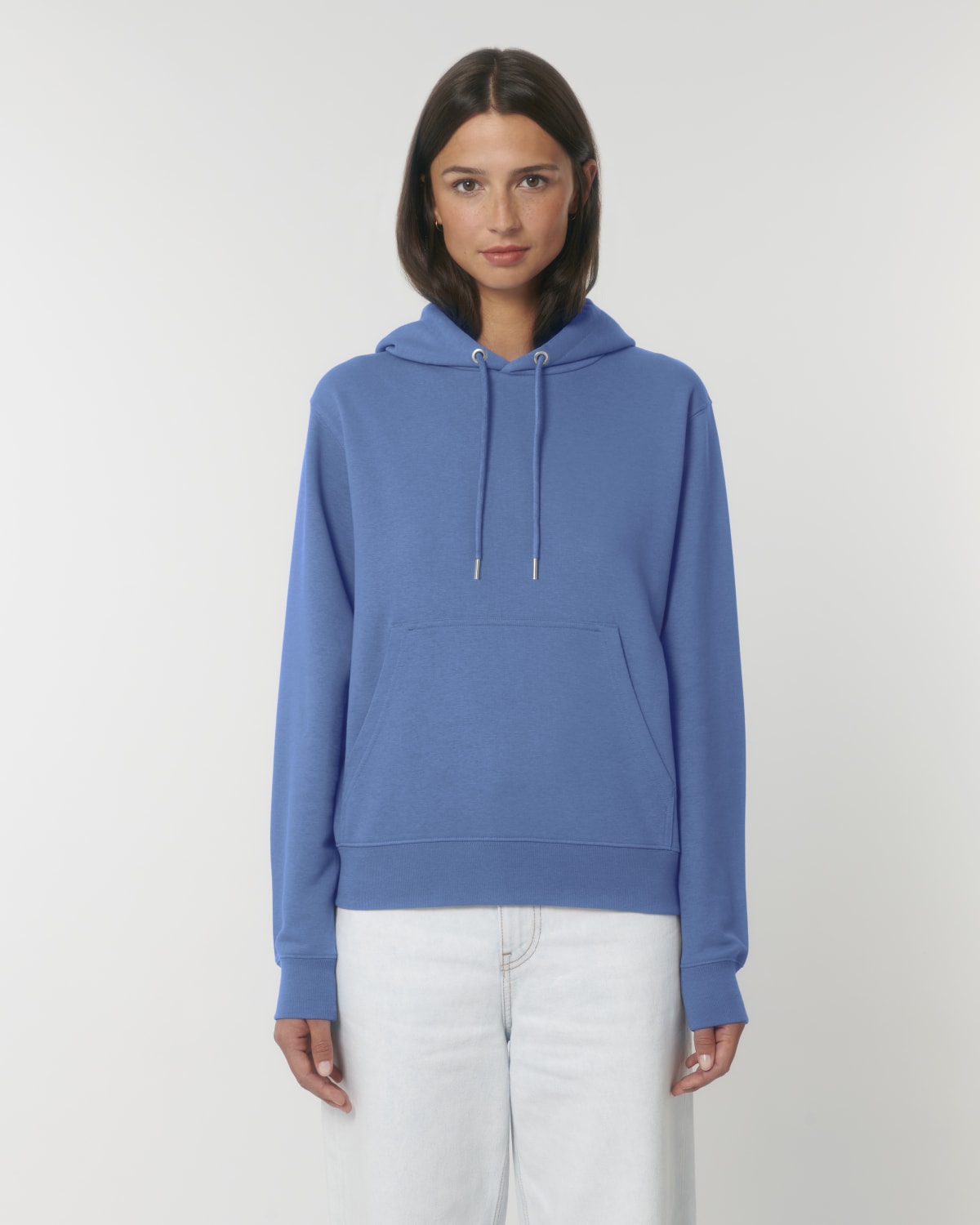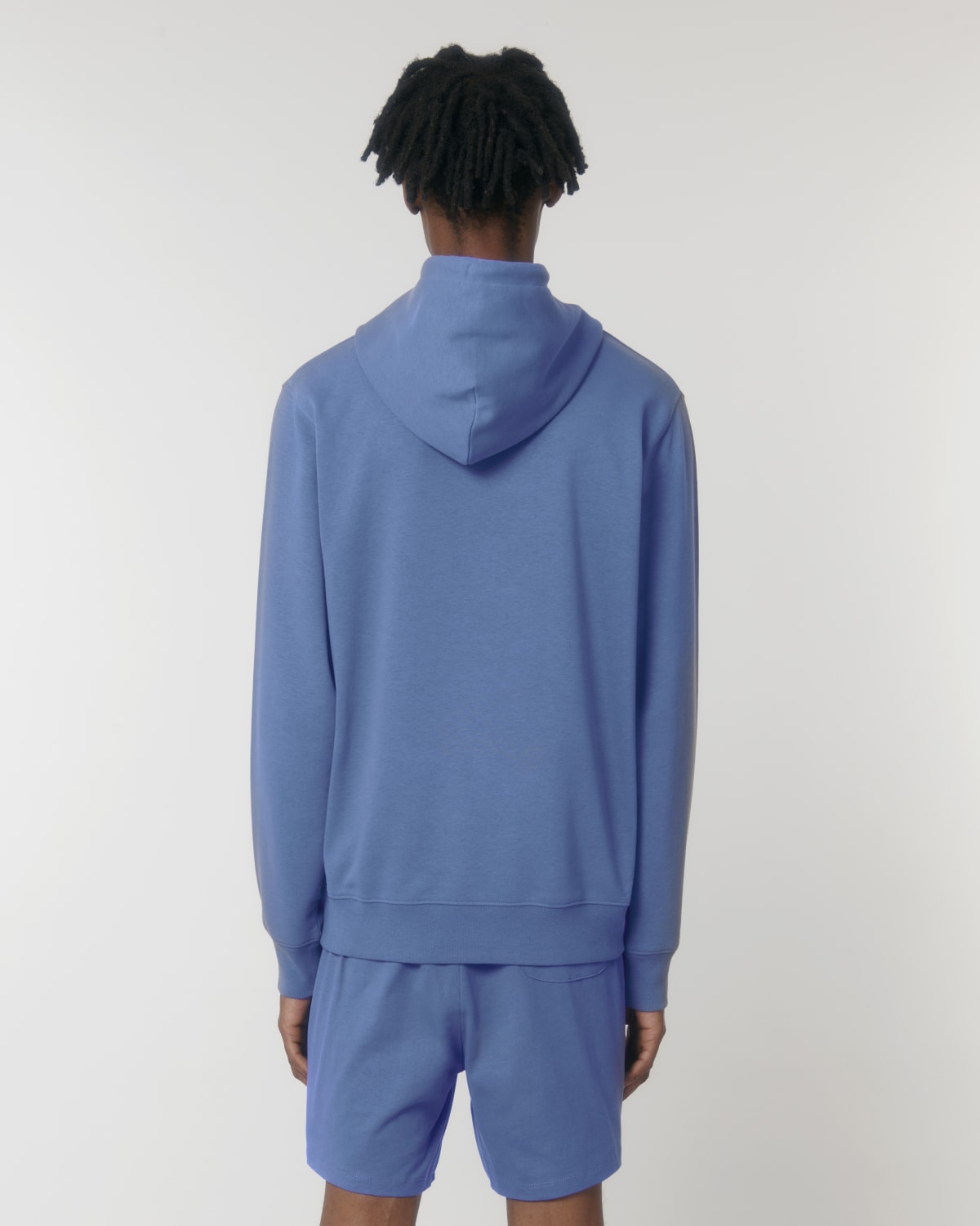 Manga pegada Capucha de doble capa en tejido principal Cordones redondos a juego con el color del tejido principal y punta metálica cerrada Ojales metálicos Bies interior de espiga en el cuello Media luna interior en tejido principal Canalé 1×1 en cuello, puños y bajo Puntada doble en sisa, puños y bajo Bolsillo canguro en la parte frontal