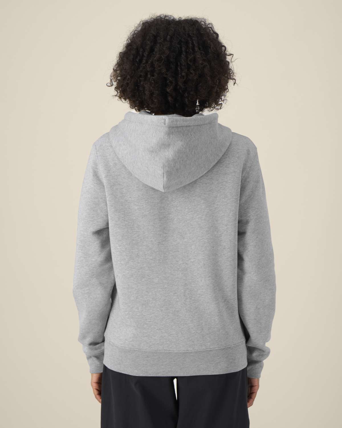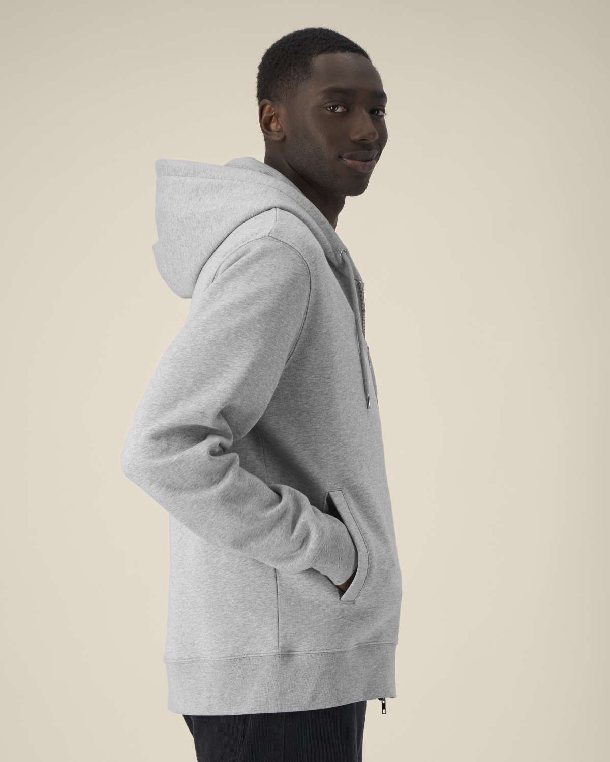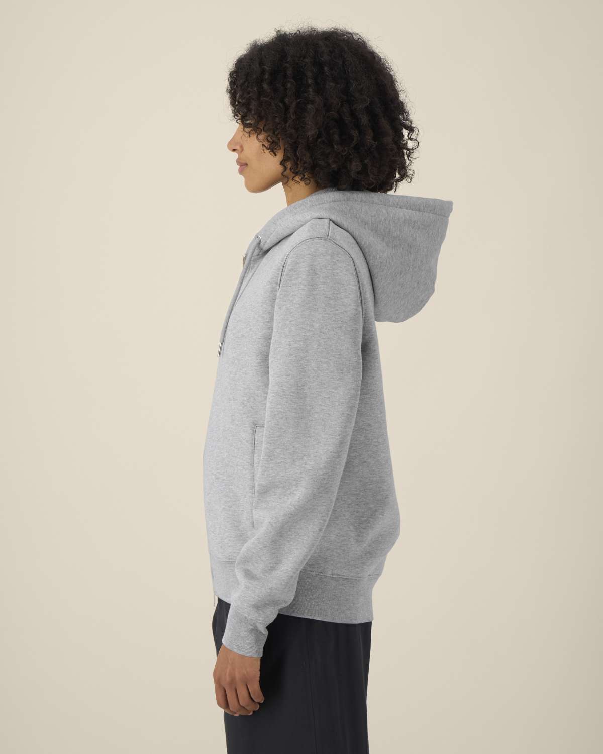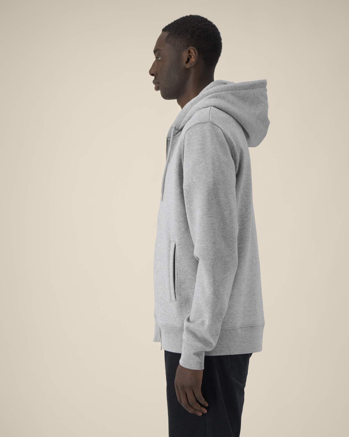 La sudadera con capucha y cremallera unisex de algodón-TENCEL™ Modal. Capucha forrada del mismo tejido con cordón redondo al tono y puntas metálicas cerradas, ojales metálicos. Manga montada. Cremallera central delantera de doble carro. Bolsillos de ojal. Canalé 1×1 en puños y bajo. Cinta de refuerzo interior en el cuello con dibujo de espiga. Media luna del mismo tejido en la parte trasera del cuello. Acabados cuidados para mayor durabilidad y confort.