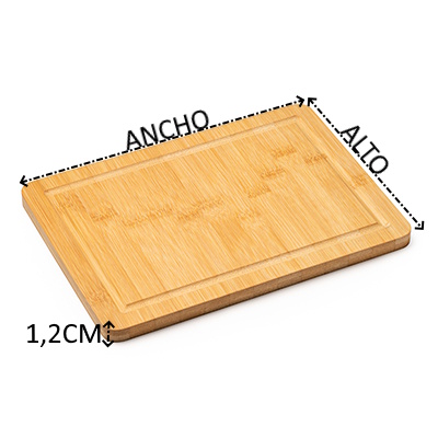Tabla de cortar de bambú natural en forma rectangular con perfil recoge líquidos.