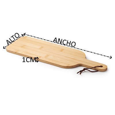 Tabla de cortar de bambú con mango para fácil manejo y cuerda para colgar, perfecta para el uso diario.