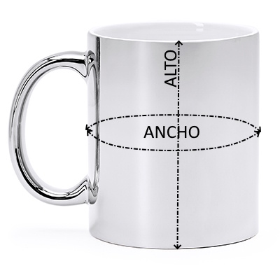 Taza de cerámica de 350 ml con diseño en acabado brillo. Especial para grabado láser, con un diseño elegante. Disponible en plata y oro.