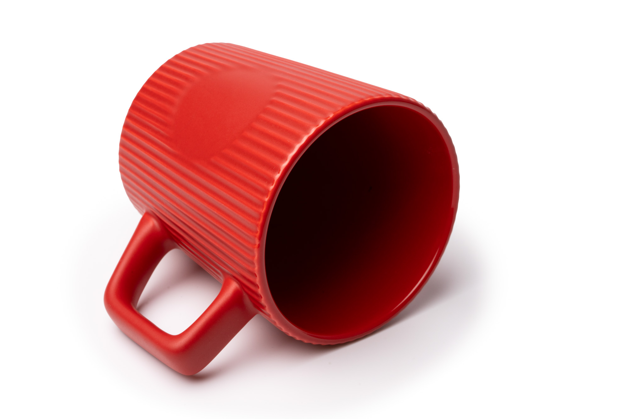 Taza de cerámica con capacidad de 320 ml. Diseño con acabado mate en su exterior, superficie ribeteada con el interior en color a juego del exterior. Cuenta con un espacio circular en su parte frontal especialmente diseñado para el marcaje y un asa con original de forma geométrica.