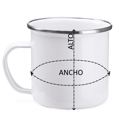 Fantástica taza metálica esmaltada con borde plateado, con capacidad de 370 ml y recubrimiento especial para sublimación, de estilo retro.