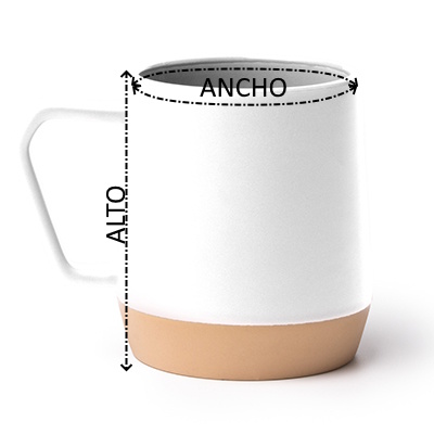 Taza elaborada en cerámica con interior en color a conjunto del cuerpo con capacidad de 320 ml. Cuenta con un diseño en acabado mate en el exterior, con la parte de arriba a color y la parte de abajo siempre en color natural. Su asa con forma geométrica le otorga un diseño original y moderno.