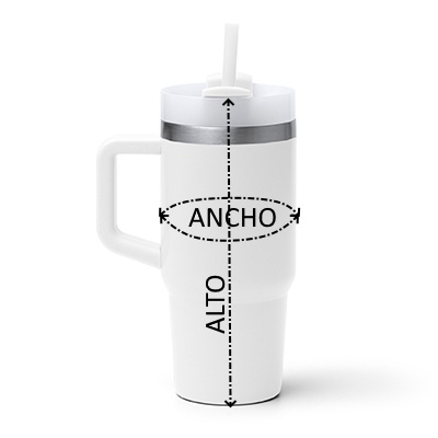 Taza térmica elaborada en acero inoxidable 304 reciclado con asa. Con capacidad de 400 ml. Incluye pajita y tapa a juego.