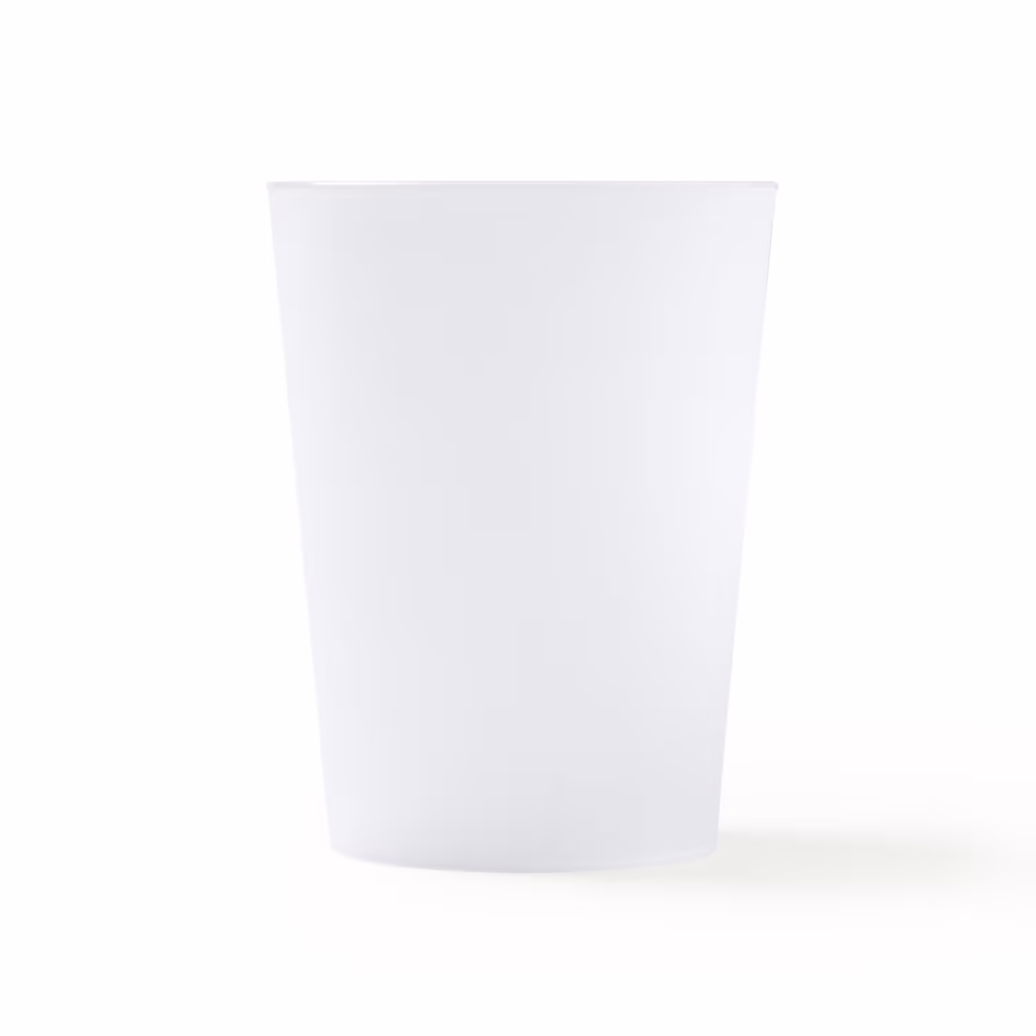 Vaso reutilizable realizado en resistente PP flexible. Capacidad 500 ml.