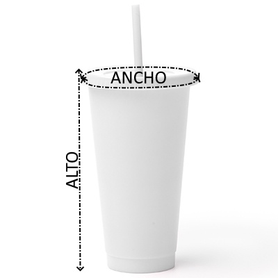 Vaso reutilizable con tapa y pajita elaborado en PP reciclado. Con capacidad de hasta 710ml. La tapa se inserta a presión y cuenta con un orificio para la pajita, resistente y rígida con un tope en su extremo que evita que se salga del vaso. Tapa y pajita van a juego del color del cuerpo del vaso. Se sirve en pack de 10.