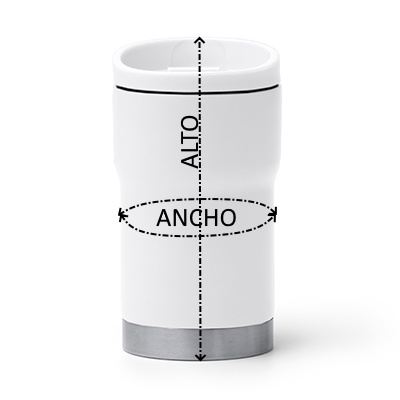 Vaso térmico de acero inoxidable 304 con doble pared. Su tapa está realizada en poliuretano y cuenta con un cierre de seguridad antifugas. Con capacidad para 350 ml.